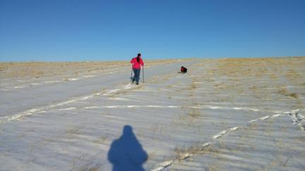 | german shepherd dog snowshoeing show shoes shoing shoeing backpack backpacking winter snow sports |