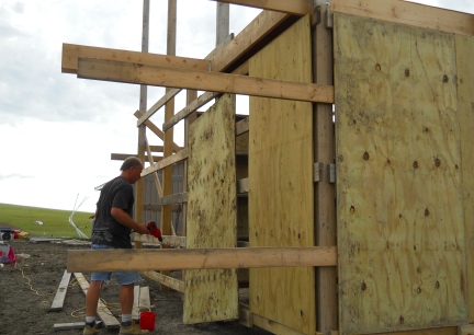 | Deron enclosing the barn just before a huge storm - 2011-08-10 23:35:58 |