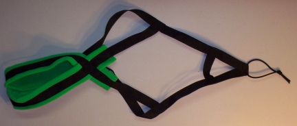 This Recreational Sled Dog Harness is BLACK poly webbing with a GREEN good grade polar fleece. It will fit most dogs between 29 and 51 pounds.