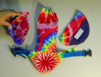 This Goose Diaper Holder Harness is made with Cute Tie Die Print Polar Fleece, backed with a waterproof fabric and it is oh so cute. It has a small ring for a light weight leash with a small hook. This Goose Diaper Holder can be lined with a sanitary napkin, a human baby diaper, a folded newspaper page or other folded papers.