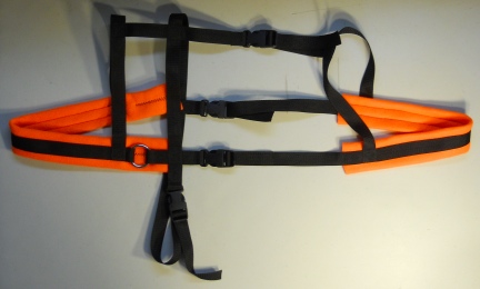 Goat Harness Facts: Webbing: BLACK Polly Webbing Padding: BRIGHT ORANGE Polar Fleece Rings: Heavy Weight Welded Metal Buckles: Quick Release Heavy Weight High Impact Plastic