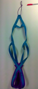 This Recreational Sled Dog Harness is Turquoise poly webbing with a Purple polar fleece. It will fit most dogs between 64 and 91 pounds. May vary slightly.