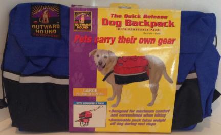 This is a Nice size LARGE Kyjen/Outward Hound Dog Backpack in the color BLUE, a really pretty Blue. It has never been worn and it is coming from a non smoking home.