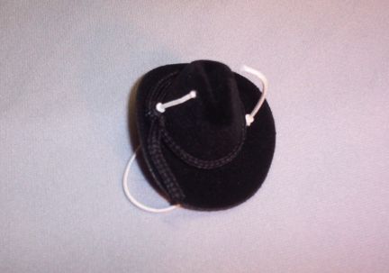 This is cute and even cuter with a rat head under it. It is a rat sized cowboy hat. It stays on the ratties head with elastic. The elastic is left long when it arrives to you so that you can cut it or tuck it to fit your own rattie.