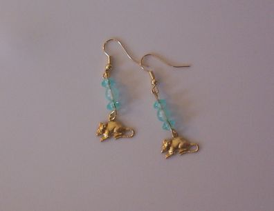 Aquamarine or Clear/Icy Turquoise Stone with Rattie Earrings!! They were made by me with gold toned fish hook type pieced earrings. The photo is not great, our camera is not great, but these are really nice earrings.