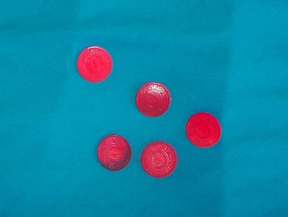 This is a set of Five Red Cent Missouri Sales Tax Tokens. I can remember my parents and grandparents saying (as if) "I do not have one red cent." People of the WWII age and their children know about "Red Cents" if they have seen them or not.