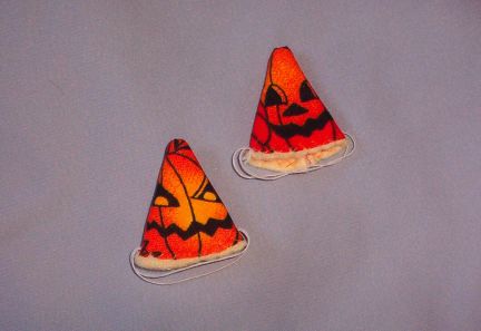 This cute little Jack O Lantern print fabric overlaid over Yellow Fleece Ra Hat is fun and cute on your rattie.